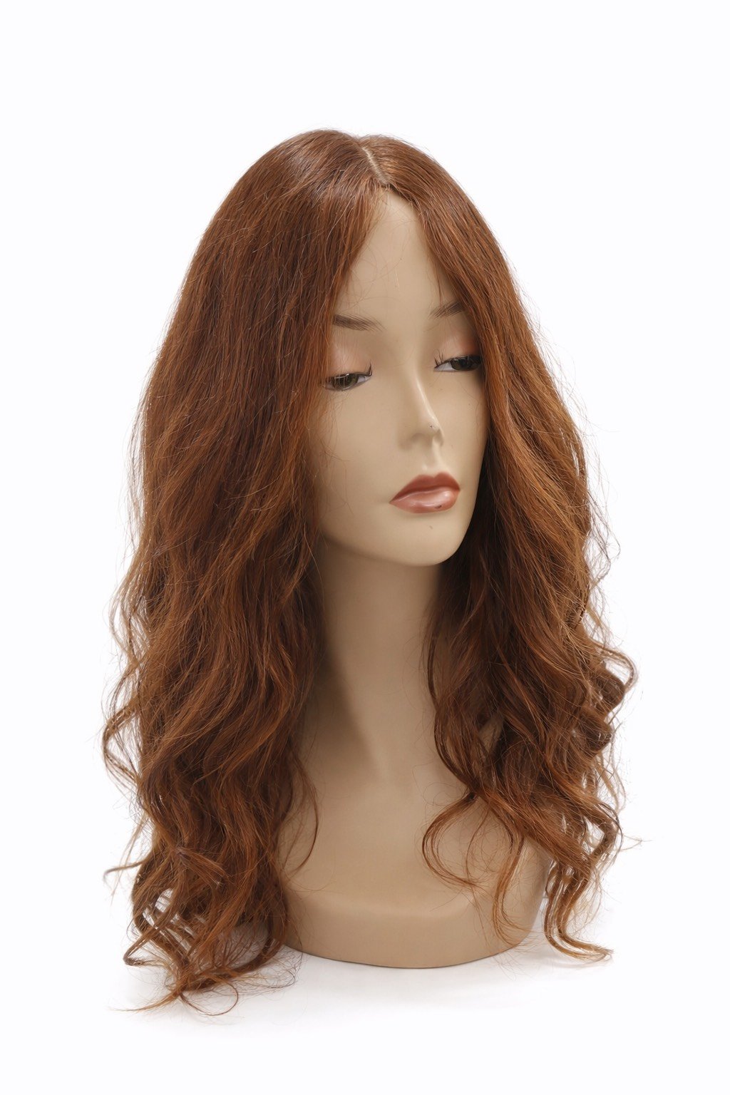 Long Wavy Auburn Copper Human Hair Wig – Centre Part – Natural Waves